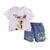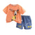 This clothing set Featuring a soft cotton T-shirt with a 3D plush dog face and paw print accents, this outfit is perfect for fun-filled days. The breathable denim shorts come with a cute cartoon hippo and "Funny Time" print, ensuring comfort and cuteness in every step. Available in cheerful colours like white, orange, blue, and green, this set is ideal for casual outings, playdates, or everyday wear.
