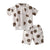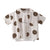 This Three-piece outfit featuring smile face printed shirt, matching shorts, and white sleeveless t-shirt. Shirt has short sleeves, button opening, pocket on chest; Shorts have elasticated waistband, side pockets and all over happy face print; And a sleeveless white t-shirt with "vehicle" typography print and round neck.