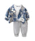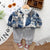 This 3-Piece set featuring a bold printed denim jacket, a comfy white "HELLO" graphic tee, and soft grey jogger pants, this set offers both fashion and function. The lightweight jacket comes with button closures and chest pockets, adding a touch of urban flair, while the elastic waistband and cuffed hems of the joggers ensure a secure, cozy fit.
