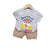 Dress your little one in this adorable duck cartoon print half sleeve t-shirt with khaki shorts knicker summer clothing set. The lightweight and breathable fabric make it perfect for warm weather. The cute and vibrant duck print adds a fun element to the outfit, making it perfect for playtime or outings.