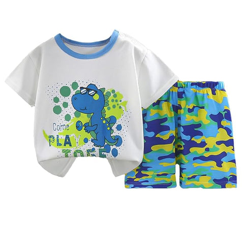 Dinosaur Printed T-Shirt & Shorts Set For Kids