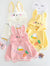 This girls' outfit features a contrast hoodie sweatshirt with an adorable rabbit applique and a carrot design, paired with soft denim jeans with frayed hems for a playful and stylish look. This ensemble goes well in all seasons except peak summers, making it perfect for playdates, casual outings, bday parties or even special occasions.