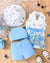 - DESIGN FEATURES: Elegant white coat with delicate butterfly prints, paired with solid-coloured crop top and shorts in blue, pink, or orange options