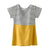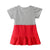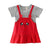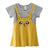 Dress featuring a classic black and white striped short-sleeve t-shirt attached with a pinafore dress, this outfit is both cute and comfortable. The pinafore showcases an endearing cartoon face with bright eyes and whiskers, along with charming knotted shoulder straps and a ruffled hem. Perfect for casual outings & playdates.