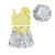 - Summery print, subtle colors, one shoulder top, belted high waist shorts that not only provide a lot of comfort, but also a pleasant vibe. So light and soft, your girl is sure to fall in love with this outfit in seconds.