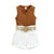 - Solid color, ribbed, sleeveless top, belted high waist shorts that not only provide a lot of comfort, but also a pleasant vibe. So light and soft, your girl is sure to fall in love with this outfit in seconds.