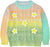 Brighten up your little one’s outfit with this charming pastel rainbow knit sweater. Featuring a soft gradient blend of peach, yellow, green, and aqua tones, this sweater is adorned with six cheerful white and yellow flower appliqués, bringing a touch of springtime joy. The cozy cable knit texture, ribbed cuffs, hem, and collar provide both warmth and style—perfect for cool-weather adventures or special occasions.