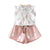 This adorable outfit features a sleeveless white top with playful pineapple prints, paired with flowy shorts adorned with matching pineapple accents. Finished with charming bows and tassel details at the waist and neckline, this lightweight set is perfect for sunny days, playdates, and tropical vibes!