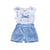 This polyester clothing set includes a top and shorts. The top has cap sleeve, round neck, delicate bow on front and polka dot print. Shorts are solid and has elasticated waistband to ensures easy dressing and a comfortable fit.