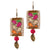 Gold Plated Long Rectangle Leaf Carved Fabric Dangle Drop Pendant Earrings