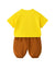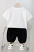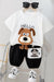Adorable pup-themed outfit featuring a cotton t-shirt, denim shorts with a unique 3D pup toy attachment.