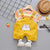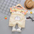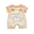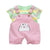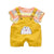 This adorable cartoon print dungaree shorts with half sleeve t-shirt, featuring adjustable shoulder straps and convenient front pocket.