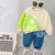 Full sleeve t-shirt features a large elephant patch on front paired with matching denim jeans for a playful look.