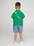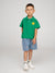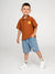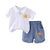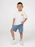 - DENIM COORDINATION: Light blue denim shorts with sun print complement the polo shirt perfectly