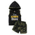 This ultimate boss print sleeveless hooded t-shirt and army print shorts kids clothing set, seems an innovative and carefree outfit that will definitely prevail your child’s endorsement with its cool prints.