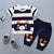Try this white and navy blue half sleeve stripe tshirt and shorts from the house of Bold N Elegant. It makes a great choice for casual outing, party or playdates. Made of superior quality materials, bear face patch prints over t-shirt and bottom makes it more attractive and extra special. Your munchkin will look even more adorable wearing this dress.