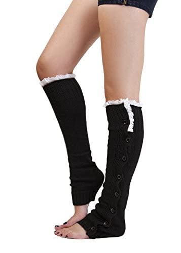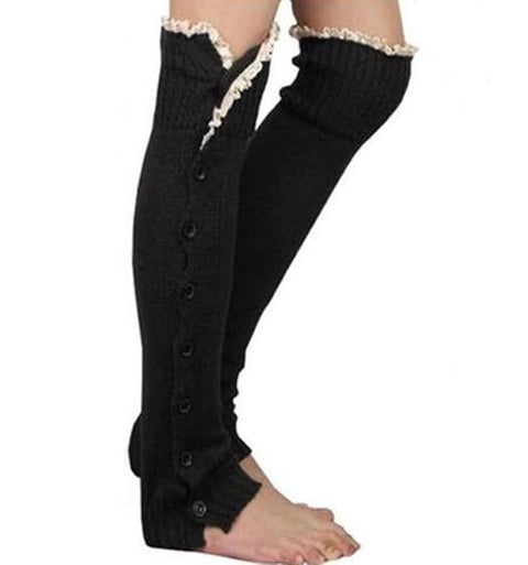 Women Woollen Thermal Leg Warmers Side Button Knee Length Boot Socks